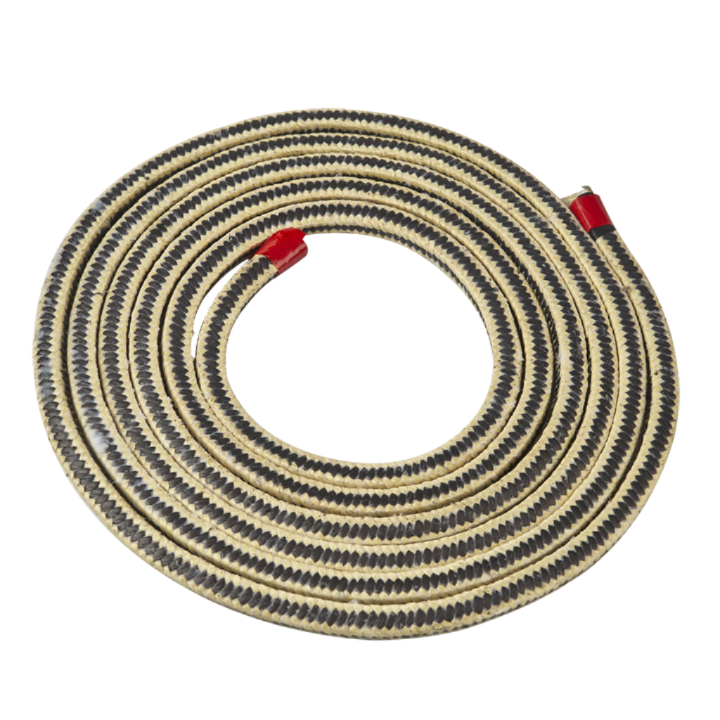 グランドパッキンは、ポンプやバルブのシャフト周りに充填されるシール材で、流体の漏れを防ぎつつ軸の回転や往復運動を可能にします。一般的にグラファイト、PTFE、アラミド繊維などの材料で編み込まれています。
